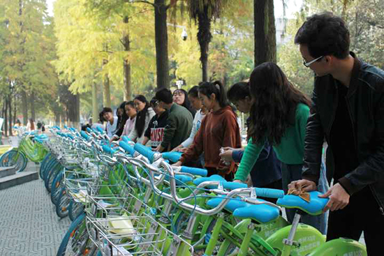 “文明使用共享单车、勇于制止不文明行为,体现新时期大学生的道德修养和社会担当。希望今后师生能共同维护校园秩序、享受美好城市资源。”志愿者汪康现场发起文明使用共享单车倡议。