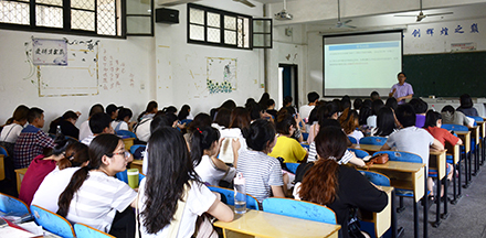 本网讯(见习记者 许书杨 岳柳佑)6月21日,外国语系邀请长江大学外国语学院副院长谢家成教授来我院做考研指导讲座。该系2014级学生现场聆听。