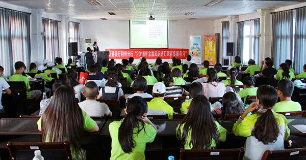 本网讯 9月18日下午,交通银行荆州分行2016年 “金融知识进万家” 宣传活动在我院城中校区学术报告厅开展。学生工作处、交通银行荆州分行工作人员及近百名新生参加活动。活动以“多一份金融了解,多一份财富保障”为主题,针对近期频出的金融安全问题,为在场同学分享了“防诈骗”和“反假币”的知识、经验,同时,围绕“电话诈骗、网络诈骗、刷卡消费诈骗”等热点话题,进行金融知识的宣讲。交通银行荆州分行行长王曦表示,在科技日益发展的年代,金融诈骗层出不穷、防不胜防,作为大学生,了解金融知识、提高防范意识刻不容缓。 刘磊 王抒曼 摄影报道 (责任编辑 刘磊)