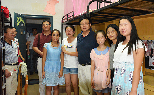 在4-341、343寝室,梅院长还看望了英韩专业、英日专业的同学,他在新同学面前郑重的交待外语系主任许晓艳:“一定要打通学生继续深造、出国学习的通道,培养更多高素质的应用型人才!”