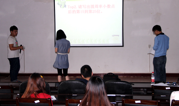 本网讯(学生记者 王铭耀 见习记者 杨启帆)5月16日下午,首届文理速记王比赛在城中校区学术报告厅圆满落幕。电信5141班王芷菁荣获冠军,园林5131班魏普杰和景观5131班李彤同时获得第二名,机械5141徐金鹏获得第三名。 比赛现场 比赛分为四个环节,采取单循环淘汰制。来自全院的30名选手分成五组,分别进行了“抽象图形”记忆、“二进制数字”记忆、“人名头像”记忆等项目的比拼。 活动负责老师王治国老师表示,开展此活动,目的是为了锻炼同学们的速记能力,帮助同学们养成勤于动脑的习惯。 (摄影 刘璐) (责任编辑 吴秀丽)