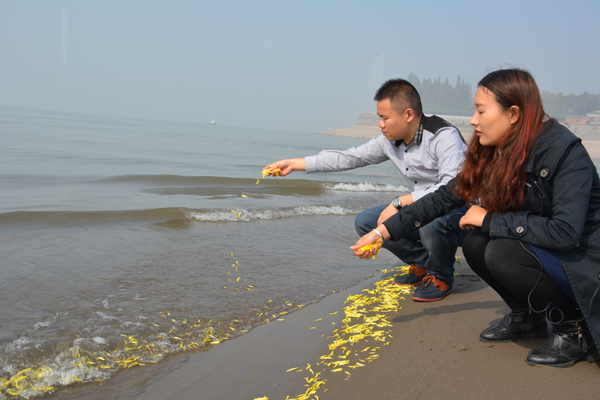 宝塔湾畔,哀思浓浓;“人链”广场,黄菊朵朵。