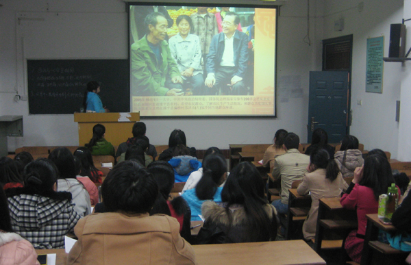 王曼同学精心准备了幻灯片,与大家一起回顾了温家宝总理任职十年的精彩瞬间。温家宝总理在十一届全国人大五次会议闭幕会的记者会上,引用林则徐的名言“苟利国家生死以,岂因祸福避趋之”回答记者问,他为国家、为人民倾注全部热情和精力,这种精神让大家深受感动。
