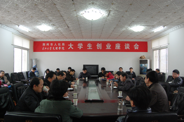 本网讯(学生记者 吕浩 黄鹏鹏)12月11日下午,由荆州市人力资源与社会保障局与我院共同举办的大学生创业座谈会在我院举行。