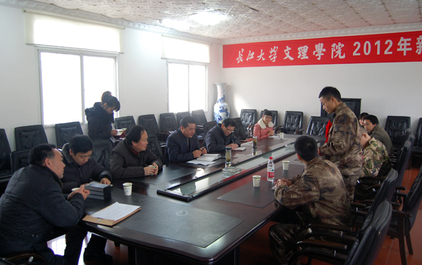 本网讯(学生记者王幸 记者刘磊)12月11日上午9点,我院2012年新兵欢送会在行政楼会议室举行。党委书记袁先海、党委副书记汪邦柱出席会议并讲话,武装部负责人周志成和各学部代表参加了欢送会。会议由党委副书记汪邦柱主持。
