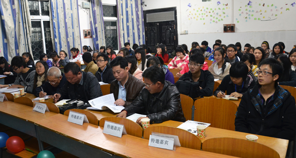 本网讯(学生记者 郑璐)近日,苇笛文学社举办了一场“叩响文学”写作指导讲座。出席讲座的嘉宾有荆州著名诗人高山松、赵昌炳、曾波、周大庆、欧阳及指导老师李明,讲座吸引了百余名不同专业的同学踊跃参加。