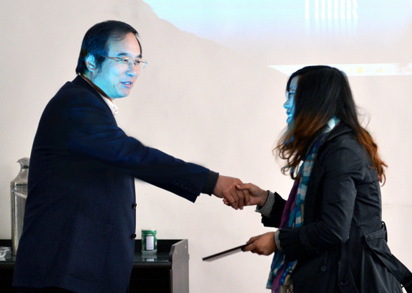 郭睦庚宣读了《关于表彰2012届就业工作先进单位和个人的决定》,理工学部、外语学部分别获得2012届就业工作“优秀单位”和 “先进单位”称号,王震、李玲、罗蕾、丁风岭、王琳分别获得“优秀个人”和“先进个人”荣誉称号。