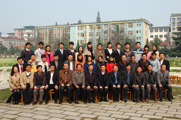 在碧波荡漾的泮池边,与会领导与嘉宾们合影留念。随后,广电专业改革研讨会和毕业生实习就业洽谈会分别在学院会议室和1教进行。