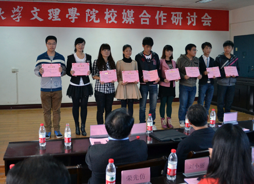 会议表彰了夏学期合作教育中涌现出的11名优秀师生。党委书记袁先海、常务副院长王金琼,洪湖、江陵、监利、松滋等广播电视台的负责人共同为夏学期合作教育优秀实习生和优秀指导老师颁奖。