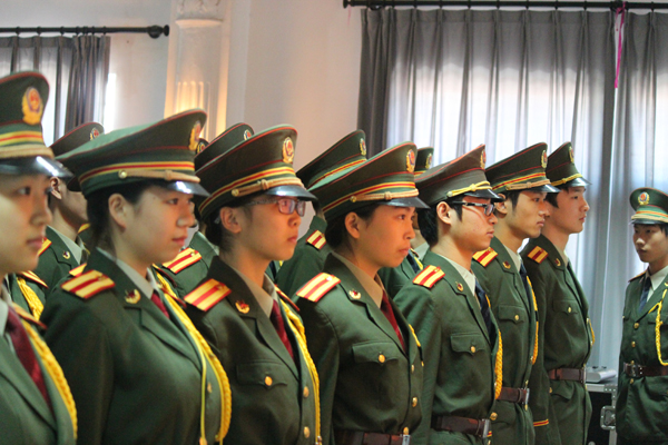 本网讯(见习记者 邹青青)10月17日,我院国旗护卫队在3教408举行了庄严的旗手交接仪式,第九届国旗护卫队正式成立。
