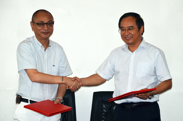 学院院长沈光明(右)和龙江龙集团董事长朱利军签署合作办学协议