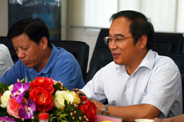 龙江龙集团董事长朱利军(左)和市旅游局副局长姚友安亲切交谈