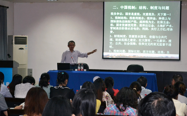 本网讯(学生记者史景宏 记者刘磊)9月27日晚,我院管理学部“明理讲座”系列报告在学术报告厅隆重开讲。来自长江大学管理学院的蒲志仲教授为该学部的200余名师生带来了题为《中国现行税制与资源改革研究》的精彩讲座。当晚,管理学部全体教职工前来聆听了讲座,基础学部主任史千里、经贸学部主任万楚军等作为特邀嘉宾参加了活动。