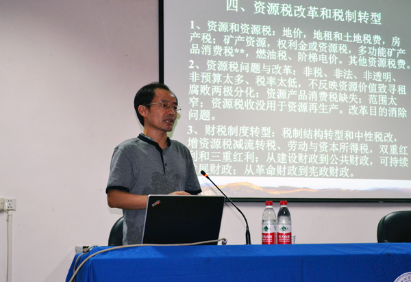 蒲志仲教授从4个方面阐述了其主要观点:一是税制的制度、模式和结构,从财务制度看税收、税制模式及历史演变,介绍了当代税制结构为税租利混制;二是中国税制结构、财税制度及税制问题;三是资源经济时代和资源税,剖析了税源、主导要素和税种时代的变迁,资源经济时代以及财政税制问题;四是资源税的改革和税制转型。