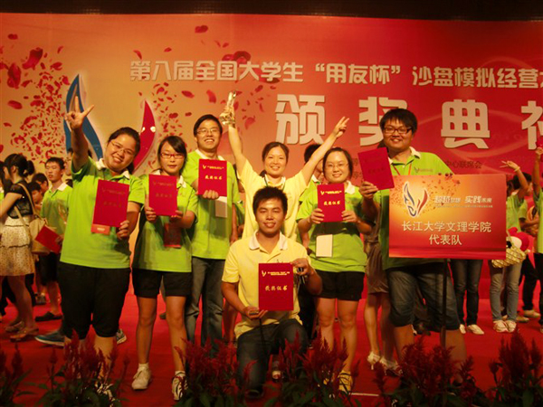 本网讯(记者 刘磊 通讯员 罗亚轩)7月28日,从广西桂林电子科技大学的全国总决赛场上传来喜讯:经过2天激烈角逐,我院代表队的5名选手,在第八届全国大学生“用友杯”沙盘模拟经营大赛中脱颖而出,一举夺魁,并最终实现了该项赛事的三连冠。