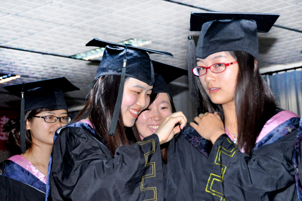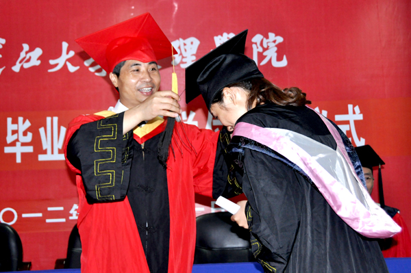 在工会大厅和学术报告厅,院领导走到毕业生中与大家一一握手话别,为毕业生们颁发学位证书并拨正流苏,共同祝福我院2012届毕业生前程似锦,鹏程万里。