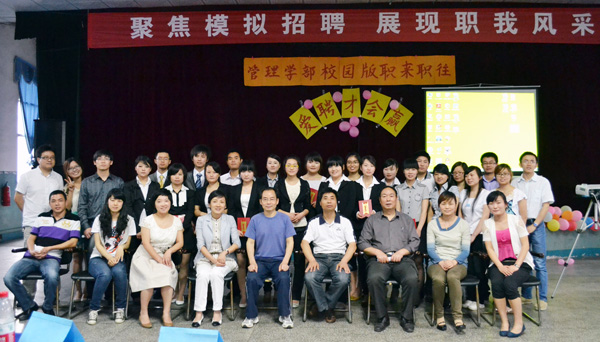副院长郭睦庚作总结发言。他说,通过参与新形式的招聘竞赛,同学们不仅展示了综合实力,锻炼了职场应变能力,更得到了专家们的悉心指点,获得了宝贵的应聘经验,他希望同学们再接再厉,以良好气质和过硬本领赢得想往的岗位。