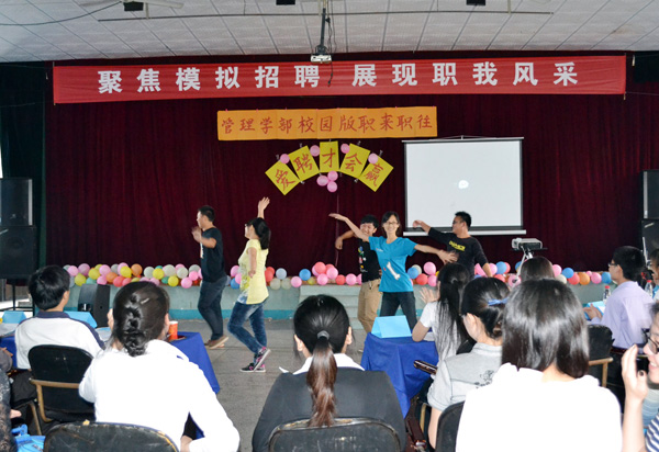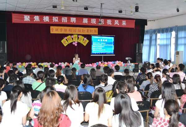 此次模拟招聘大赛为期1个月,分海选、初赛、复赛和决赛4个环节,通过情景模拟考核学生在职场应聘过程中的面试技巧。