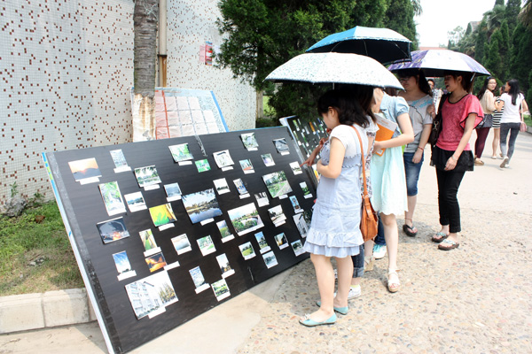 本网讯(学生记者 李立科)近日,第六届“泮池五月风”科技文化节系列活动之“魅力校园”摄影展,在学院西区主干道开展。 摄影展为期18天,围绕“以镜头撷取缤纷 用光影记录点滴”的主题展开,倍受全院师生关注。 活动开展以来,同学们踊跃投稿,共征集作品242幅,经筹备组精心挑选,严格选拔,最终遴选出108幅作品参展。 展出作品分“魅力景色”和“魅力人物”两类,记录了大学校园生活中的美丽瞬间和温馨时刻,展现了校园之美、学习之美、生活之美,拍摄内容包括校园环境、建筑设施、仪器设备、花木景观及工作在学院教学、科研、后勤保障岗位上师生的精神面貌。 (摄影 王幸) (责任编辑 刘磊)