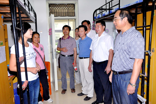 学院领导沈光明(右一)、王金琼(左二)、郭睦庚(左一)、汪邦柱(右二)深入学生寝室
