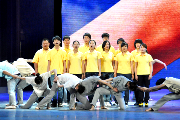英雄集体与华师学子在央视一号大厅联排