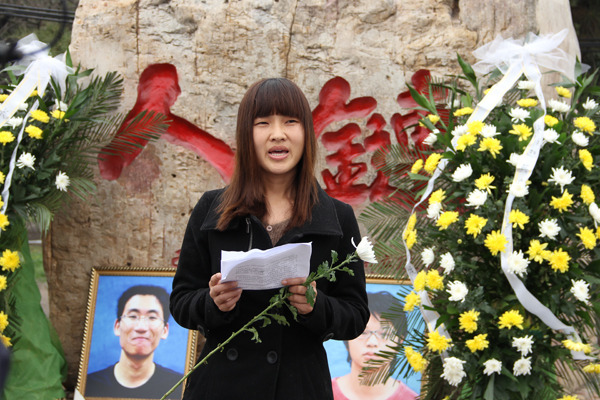 “我们每颗心的深处,都裹着一处不可触摸的疼痛,没有了你们,生活显得凄美……身边千千万万个和雷锋一样的人,在危急关头见义勇为的人,都是你们伟大精神的化身!”学生代表李兰兰念着悼文,语调由低缓而激昂,“我们心生一个念头:人的一生应该这样度过,当回忆往事的时候不因为虚度年华而悔恨,不因为碌碌无为而羞愧,在临死的时候,能够说我的整个生命和全部青春,都曾亮丽地留存人间!”