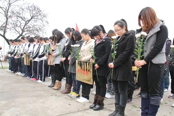 3时许,学校党委宣传部部长徐波率领师生,伫立三位烈士的遗像前,静静默哀3分钟,纷纷向音容犹存的英烈轻轻献上手中的白菊。