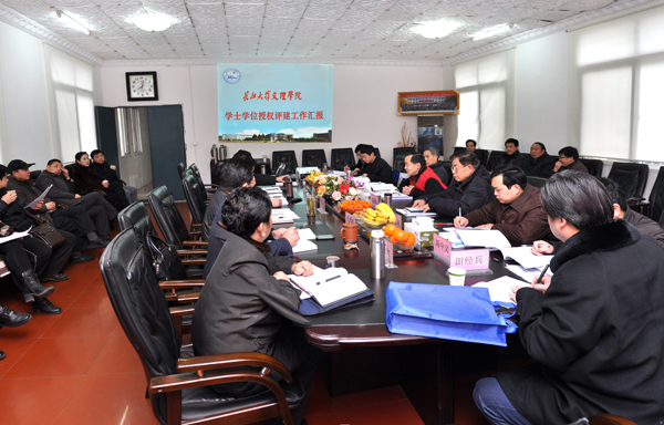 本网讯(记者 周芳)3月10日上午,我院邀请长江大学专家组对学士学位授予工作进行评审,校领导刘绍平担任专家组组长,并主持评审会,学院院长沈光明、党委书记袁先海、常务副院长王金琼、副院长郭睦庚、党委副书记汪邦柱及相关职能部门负责人出席会议,王金琼作工作汇报。