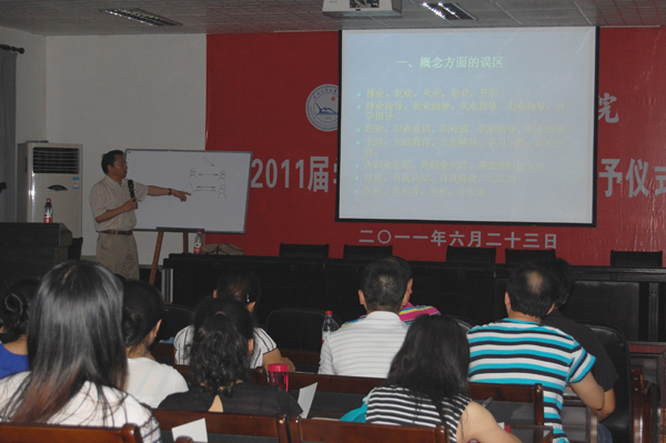 湖北省高等学校毕业生就业指导服务中心副主任王建农向全体学员介绍了我国对从事职业指导和就业服务人员的职业资格鉴定情况以及目前职业指导师队伍发展建设的现状,并做了《大学生职业生涯规划教学与辅导过程中常见问题》专题辅导讲座。