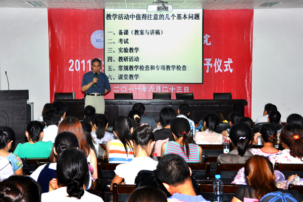 本网讯(记者 周芳)6月28日下午,学院教学督导颜承农教授为我院青年教师带来一场业务知识培训,60余名2011年新进教师在学术报告厅聆听了本次讲座。