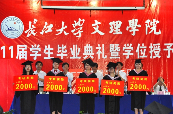副院长郭睦庚宣读了学院《关于准予荣梦等1771名2011届本专科生毕业的决定》、《关于对考取2011年硕士研究生的同学予以表彰奖励的决定》和《关于表彰2011届优秀毕业生的决定》等文件。学院领导分别为考取研究生的毕业生予以奖励。
