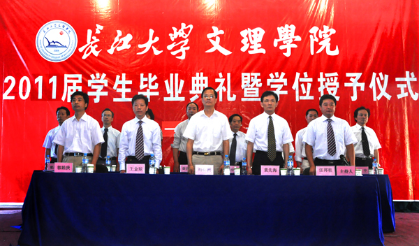 本网讯(学生记者 喻峰)6月23日上午,学院2011届学生毕业典礼暨学位授予仪式在工会大礼堂隆重举行。长江大学副校长刘在洲,学院领导袁先海、王金琼、郭睦庚、汪邦柱出席仪式,2011届全体毕业生出席了此次大会,党委副书记汪邦柱主持会议。