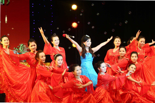 我院管理学部梅曼曼老师、基础学部张雪琪老师带领12名学生,在第三个乐章《党旗颂》中,深情出演了大型歌伴舞《祝福祖国》。节目以精彩的表演、真挚的情感和恢弘的气势,赢得了现场观众的热烈掌声。