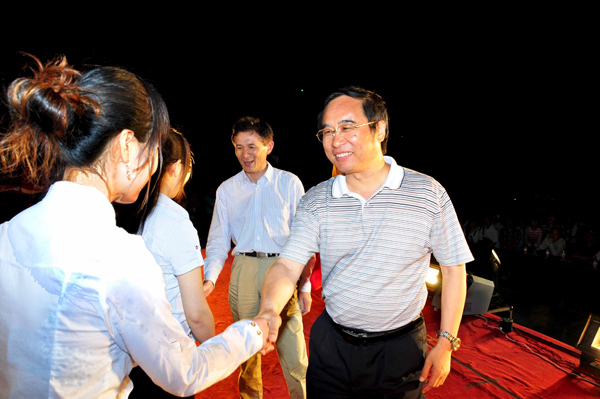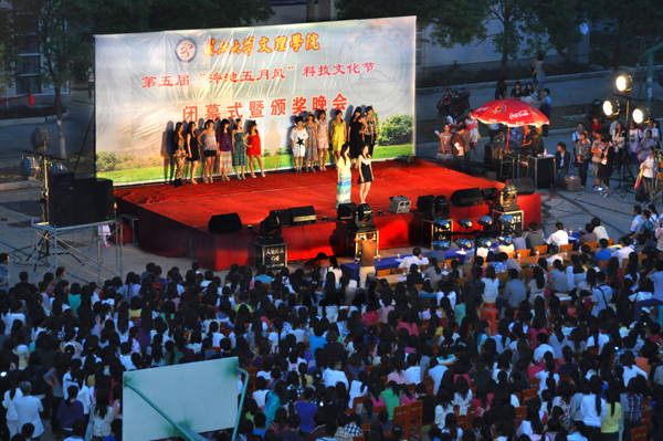 本网讯(学生记者 黄志刚)夏荷才染泮池绿,已是芬芳溢校园。5月31日晚,第五届“泮池五月风”科技文化节闭幕式暨颁奖晚会在基础学部篮球场举行。学院领导沈光明、袁先海、王金琼、郭睦庚、汪邦柱及各部门负责人出席,与全院师生分享喜悦。
