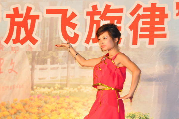 在才艺展示环节,选手们各出新招,吸引大家的眼球。07号选手张婵的一段天津快板《武松打虎》,说的是风趣地道,让同学们眼前一亮;06号选手则把小沈阳搬上了舞台,惹得场下阵阵欢笑;10号选手熊传兵则给我们带来了神奇的魔术表演,把比赛推向了高潮。