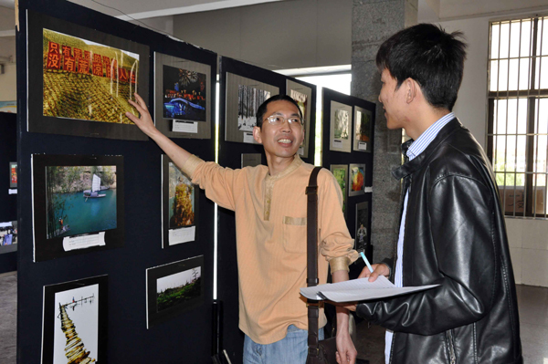 本网讯(学生记者 黄志刚)5月23日,泮池五月风系列活动“青春•使命”摄影作品展在1教展厅隆重开展。当天上午,院长沈光明、党委书记袁先海、学校宣传部曾尉老师和相关行政部门负责人来到现场观看了展出。