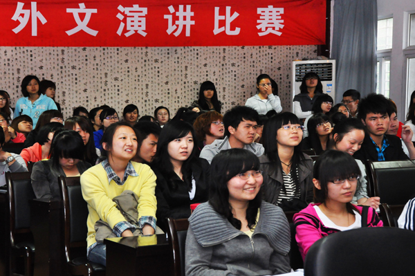 本网讯(通讯员 杨凡 学生记者 刘小芹)5月23日晚,外文演讲比赛在学术报告厅激情开赛。 围绕“Promise is debt”这一主题,26名选手通过分命题演讲、现场即兴演讲、评委提问三个环节展开激烈角逐。 来自英日5082班的陈思灿用日语讲述了双汇瘦肉精事件,以此来反思探讨承诺与诚信的关系以及它们的重要性,标准流畅的发音、稳健的台风、大方得体的肢体语言赢得了阵阵喝彩。其他选手也展示了自己在语言应用、逻辑思维和文化视野方面的综合素养,诠释了外文演讲的独特魅力。 经过三个小时的激烈角逐,来自英日5091班的马津津、工商5092班的吕少梅分别获得专业组和非专业组的一等奖,英日5082班的陈思灿等11人分别获得其他奖项。 (摄影 李立科) (责任编辑 周芳)