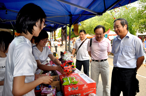 下午六点,院长沈光明来到营销现场。他详细了解各团队的销售情况,并饶有兴致地与参赛同学们交谈。在“清清汇友”团队现场,他勉励在场的同学们在本次大赛中,锻炼自己的营销实战能力,激发自己创新思维,提高学生综合素质,提升今后就业的市场竞争力。