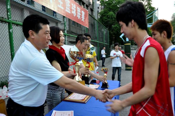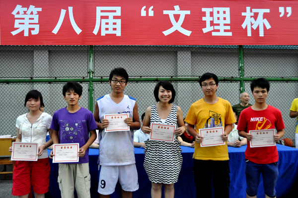 本网讯(学生记者 周瑄)5月9日下午,随着裁判的哨声吹响,为期半个月的第八届“文理杯”大学生篮球联赛最后一场比赛结束。 管理学部男女队分别战胜外语学部和经贸学部代表队,在随后进行的闭幕式上,党委副书记汪邦柱、工会主席石雯雯、学工处主任彭中、基础学部主任史千里等出席闭幕式。 理工学部男子力克管理学部,捧得桂冠;管理学部女队毫无悬念,再次蝉联冠军,豪取八连冠。此外,王玺、谢思思等获得“优秀运动员”荣誉称号,经贸学部女队和人文学部男队获得“体育道德风尚奖”,外语学部男子荣获“精神文明代表队”。蔡方敏等6人被评为“优秀裁判员”。 汪邦柱等为获奖单位和个人颁发荣誉证书。 颁奖典礼结束后,运动员们纷纷在球场上合影留念。 (摄影 李立科) (责任编辑 周芳)
