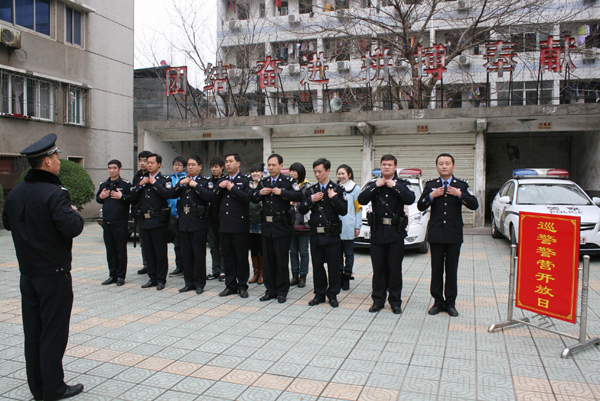 本网讯(通讯员 吕政)近日,学院国旗护卫队的七名队员应邀参加了荆州市公安局巡警支队“警营开放日”活动,一同体验了巡警们的日常工作。 上午9点,荆州市公安局巡警支队二大队二中队负责人带领同学们参观了荣誉室及日常办公场所,并给同学们介绍了巡警经常使用的手枪、电棍、手铐等6种常规装备用途和该中队的辖区范围。 随后七名同学根据安排,被分为两组体验了巡警们的日常工作。其中一组带上袖章和手持警棍在花台至天桥一段同巡警一起徒步巡逻,另外一组乘坐巡逻车与巡警一同从武德路到长江大学西校区执行巡逻任务。 来自管理学部的廖可涵说:“参加这样的体验生活,让我们更加了解了警营,同时也会支持和配合警察工作。在以后的学习和生活中也会向他们学习,做一个优秀的大学生。 (责任编辑 周芳)