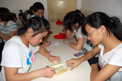 5月30日下午2时,志愿者们如约来到这个特殊的学校,大家精心编排了手语歌曲、武术、魔术等节目,提前和小朋友们一起庆祝“六一”儿童节。孩子们和志愿者一起欣赏节目,一起用笔和纸互相交流互动。活动始终被歌声、笑声和浓浓的爱意所包围,孩子们欢快的笑声也感染了每一位志愿者。小朋友们赞叹大哥哥们精彩的武术表演,同时也有一位小朋友主动站出来为大家献上了一首《海阔天空》,他认真的演唱赢得了阵阵掌声,还有三位小朋友带着害羞的表情一起合唱一曲《不该流的泪滴》,感动了所有志愿者,掌声久久未停息。三位小朋友演唱后回到座位上互相讨论哪里没有唱好,哪里没有唱整齐。“上帝在关上一扇门的时候,总会开启另一扇窗,其实这些特殊的天使很可爱。”一位外语学部的志愿者这样描述自己的感受,这位志愿者随后把自己准备的糖果分发给每一位孩子,孩子们有礼貌的接过糖果,并以微笑回应志愿者姐姐。