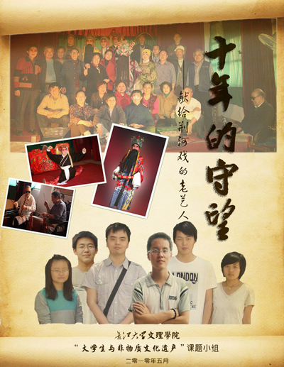 为了探究大学生在非物质文化遗产传承与保护中的作用,他们多次通宵达旦,查阅资料;为了近距离接触非物质文化遗产并寻访老艺人,他们在炎热的暑假奔走在偏远的乡间;为了制作保护非物质文化遗产的宣传专题片,他们扛着沉重的摄影机器,无数次往返于老艺人和学校之间……学院一群“80后”的学子,怀揣着对艺术的无限热爱,胸怀当代大学生应有的社会责任感,为传承和保护非物质文化遗产正积极行动着。