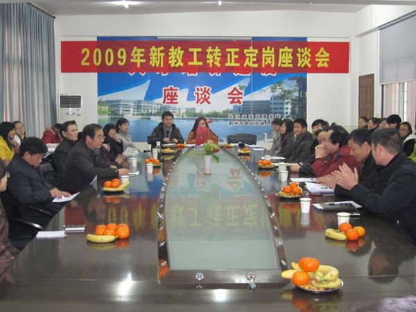 本网讯(学生记者 周婷婷)12月17日,学院2009年新教职工转正定岗座谈会在我院图书馆五楼会议室召开。学院领导沈光明、袁先海、王金琼、郭睦庚、汪邦柱,各学部主任以及新教职工参加了此次座谈会。