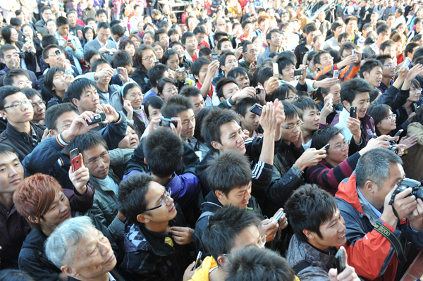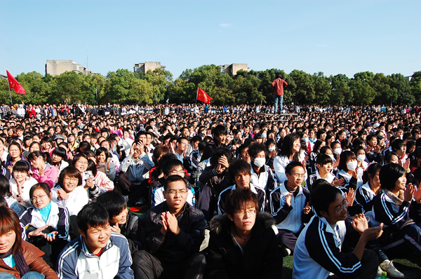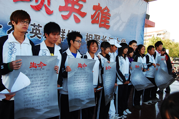 当天下午1点半,长江大学西校区人头攒动,该校1万多名学生与“10·24”英雄集体中生还的大学生一起聚集在这里,期盼赞扬“10·24”英雄集体的颂歌《生命》的首唱。