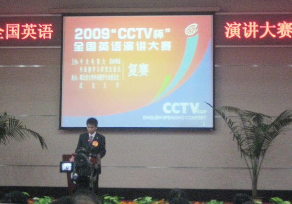 本网讯(记者 天一)10月18日,2009“CCTV杯”全国英语演讲大赛湖北赛区决赛在武汉大学落下帷幕。我院外语学部张恒同学载誉而归。 张恒在比赛中 本次“CCTV杯”全国英语演讲大赛湖北赛区决赛吸引了来自武汉大学、华中科技大学、华中师范大学等34所高校的众多选手参加,比赛分为定题演讲、即兴演讲、评委提问等三个环节,考察选手英语口语表达及逻辑思维能力,来自英语5071班的张恒在定题演讲环节凭借“culture smart or science intelligent”(文化聪慧还是人工智能)这一演讲赢得了现场观众雷鸣般的掌声,流利地道的口语发音,自信大方的神态让现场评委竖起了大拇指,最终张恒从众多选手中脱颖而出,以优异成绩荣列第六名,获得二等奖荣誉证书。 张恒和指导老师李晴晴(右)、崔罗强(左)合影 据悉,这已经是张恒第二次参加“CCTV杯”全国英语演讲大赛,在2008年的比赛中,张恒获得了三等奖,也是去年荆州地区所有参赛者中唯一得奖者,谈及今年的获奖感言,他笑着说,成绩只能代表过去,自己会继续努力,同时也感谢学部指导老师的支持与关怀。 [小链接]“CCTV杯”全国英语演讲大赛由中央电视台英语频道与外语教学与研究出版社联合主办,旨在为全国大学生搭建一个激励英语学习、培养思辨能力、展现综合风采的舞台,同时为中西文化架起一座促进文化沟通、增进国际交流的桥梁。迄今为止已经举办了八届,通过英语演讲比赛,引导学生关注与思考中国传统文化,在中西文化思想的对比中,展示中华文明的魅力与价值,树立传播中华灿烂文明的使命感。 (责任编辑 周芳)