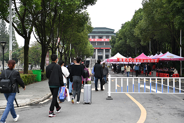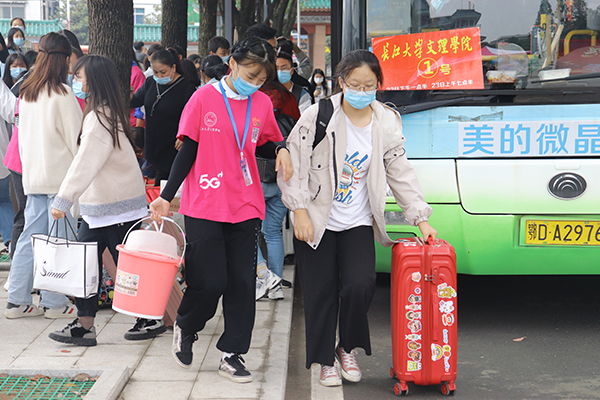 满怀憧憬 步入校园 抵达大学校园 开启崭新篇章 各就各位 迎候新生 志愿服务 贴心周到 满怀期待 迈进大学 报名注册 满心激动 资格审查 认真严谨 缴费咨询 耐心解答 元气满满 乘风破浪 大学食堂 美食迎新生 报到现场 秩序井然 严格值守 调度有序 查看分班 神情专注 院长王文凯(右一)、党委书记朱继平(右二)进寝室看望新生 院长王文凯(右三)、党委副书记孙细望(右五)在寝室与新生交谈 (摄影 刘磊 周芳 黄志刚 丁永粉 宋姜楠 郁鑫) (责任编辑 筱梦)
