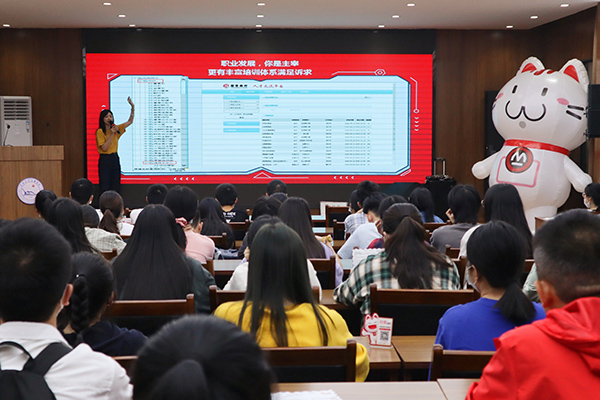 本网讯(记者 刘磊 见习记者 葛杏)9月24日,一家教育培训机构、一家金融机构分别走进我院举办专场招聘宣讲会,拉开我院2021届毕业生线下招聘活动序幕。 当天,在城中校区、西校区共举办宣讲会三场,从下午2时30分持续开展至晚上8时30分,200余名2021届学生现场聆听。宣讲人从岗位职责、工作要求、个人发展和薪资待遇等方面介绍了招聘岗位相关情况,鼓励同学们做好各项就业准备工作,并针对同学们提出的具体问题进行现场答疑。 (摄影 谢承玉) (责任编辑 筱梦)