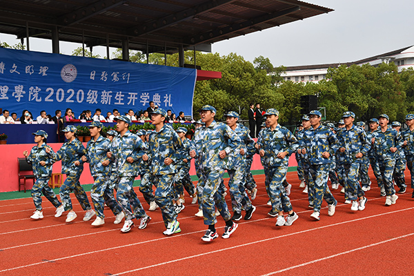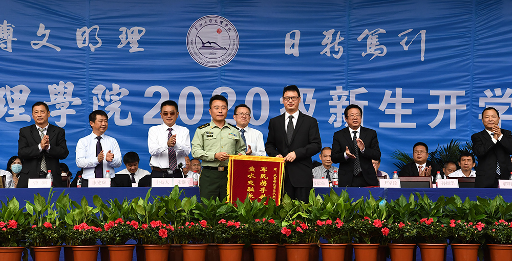 在开学典礼上,2020级新生组成28个军训连进行了成果展示。尹家经宣读表彰决定,对军训工作先进集体和个人进行了表彰。院领导为获奖的集体和个人颁奖。孙细望代表学院向承训单位赠送锦旗。