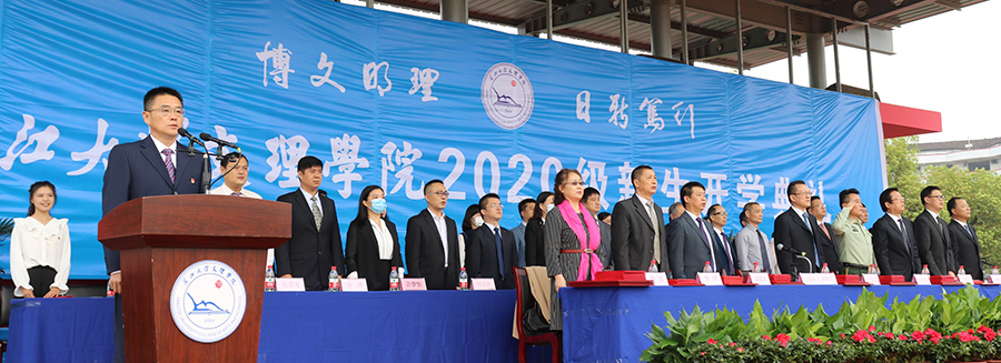 朱继平主持开学典礼并发表讲话。他对2020级新生的到来表示衷心祝贺,希望大家始终保持逐梦前行的步伐,以坚强的毅力与笃定的实力,克服疫情难关,走好求学之路,在文理学院实现自己的理想。与此同时,经过了16年的沉淀与发展,文理学院也必将有信心和实力,为大家创造更好的发展条件和机遇。他期待新同学在文理学院这个新的赛道上跑出更好的成绩,绽放更加绚丽的青春光彩。