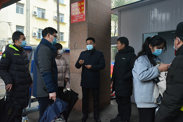 院领导一行查看了校园门禁系统、食堂、学生宿舍等区域,看望已经返校学生和相关工作人员,并对校园安全管控、宿舍水电安全管理及食堂卫生安全工作提出具体要求。